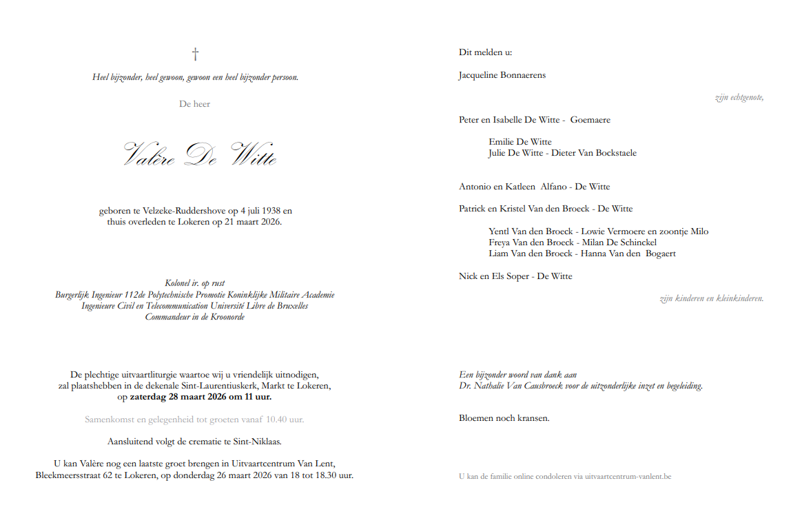 Valère was cadet in Laken (54-57) en lid van de 112 Pol Prom in de KMS.